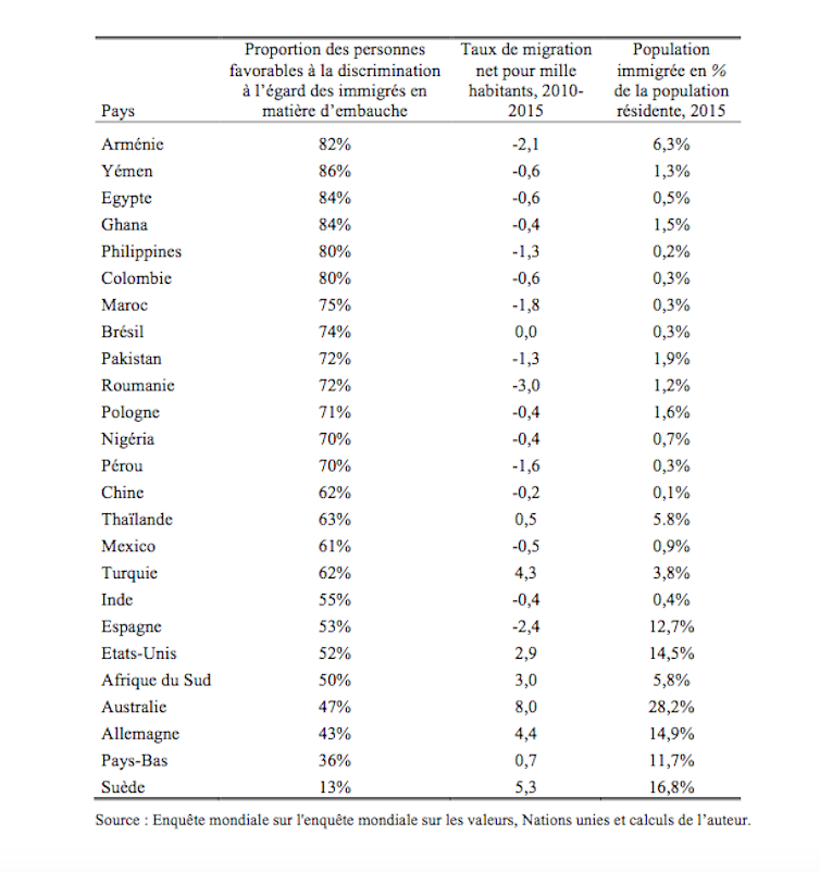 Selon cette théorie, le contact intergroupe réduit les préjugés et la discrimination. Dès lors, on peut s’attendre à ce que les citoyens des pays dont la population immigrée est relativement modeste aient moins de possibilités de contacts avec des personnes immigrées. Ce qui aura pour effet d’amplifier le sentiment anti-immigration, la discrimination à l’égard des immigrés, en particulier en matière d’emploi, et leur exclusion.